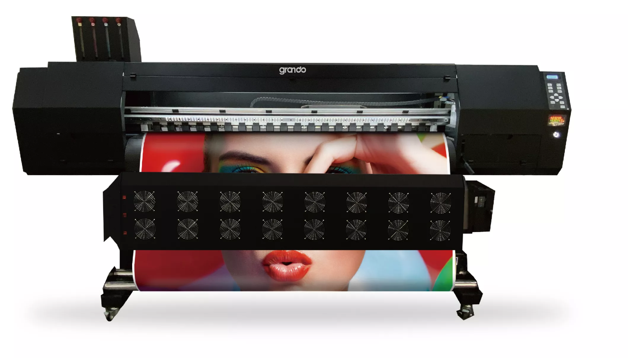 Экосольвентная печатная машина GRANDO обеспечивает высокое качество печати с разрешением до 2400 dpi, благодаря использованию надёжных печатающих головок I3200.